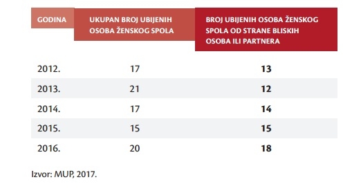 Tijekom 2016. godine u Republici Hrvatskoj zabilježen je najveći broj ubojstava žena u zadnjih 7 godina (20 ubijenih žena, od čega 18 ubijenih od strane njima bliskih osoba ili partnera). To se događa u situaciji dok u istom vremenskom periodu statistički bilježimo sedmogodišnji kontinuiran pad prekršajnih djela nasilja u obitelji[1]. Uz jasan trend brutalizacije nasilja, odnosno tranzicije nasilja prema ženama i nasilja u obitelji iz područja prekršajnog u područje kaznenog prava, uočeno povećanje broja ubojstava žena ukazuje na to da zakonske, pravosudne, medijske te druge obrazovne i edukacijske mjere suzbijanja nasilja nad ženama ipak nisu polučile željenim rezultatima u smislu smanjenja broja slučajeva nasilja nad ženama s najgorim ishodom, već suprotno, brojke ubijenih žena, nažalost, rastu.