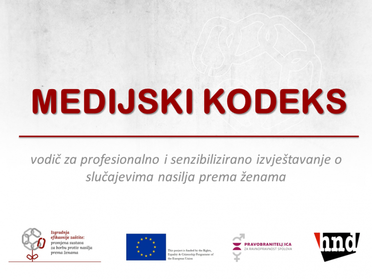 Pravobraniteljica za ravnopravnost spolova u suradnji s Hrvatski novinarskim društvom kao pridruženim partnerom na projektu VAWA “Izgradnja učinkovitije zaštite: promjena sustava za borbu protiv nasilja prema ženama”, pokrenula je raspravu s medijskim djelatnicama i djelatnicima o nacrtu Medijskog kodeksa - vodiča za profesionalno i senzibilizirano izvještavanje o slučajevima nasilja prema ženama. Medijski kodeks nastao je temeljem rada triju fokus grupa- novinari/ke, urednici/ce i glasnogovornici/ce te analizama koje je Pravobraniteljica u suradnji s partnerskom organizacijom Ženska soba provela u okviru projekta.